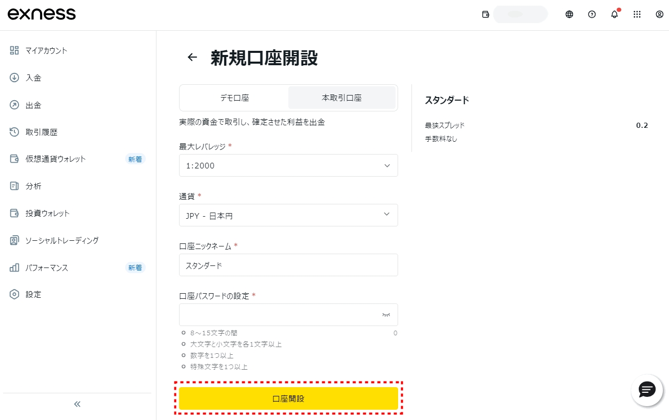 口座パスワードを設定したら、さいごに「口座開設」というボタンを押せば完了です。